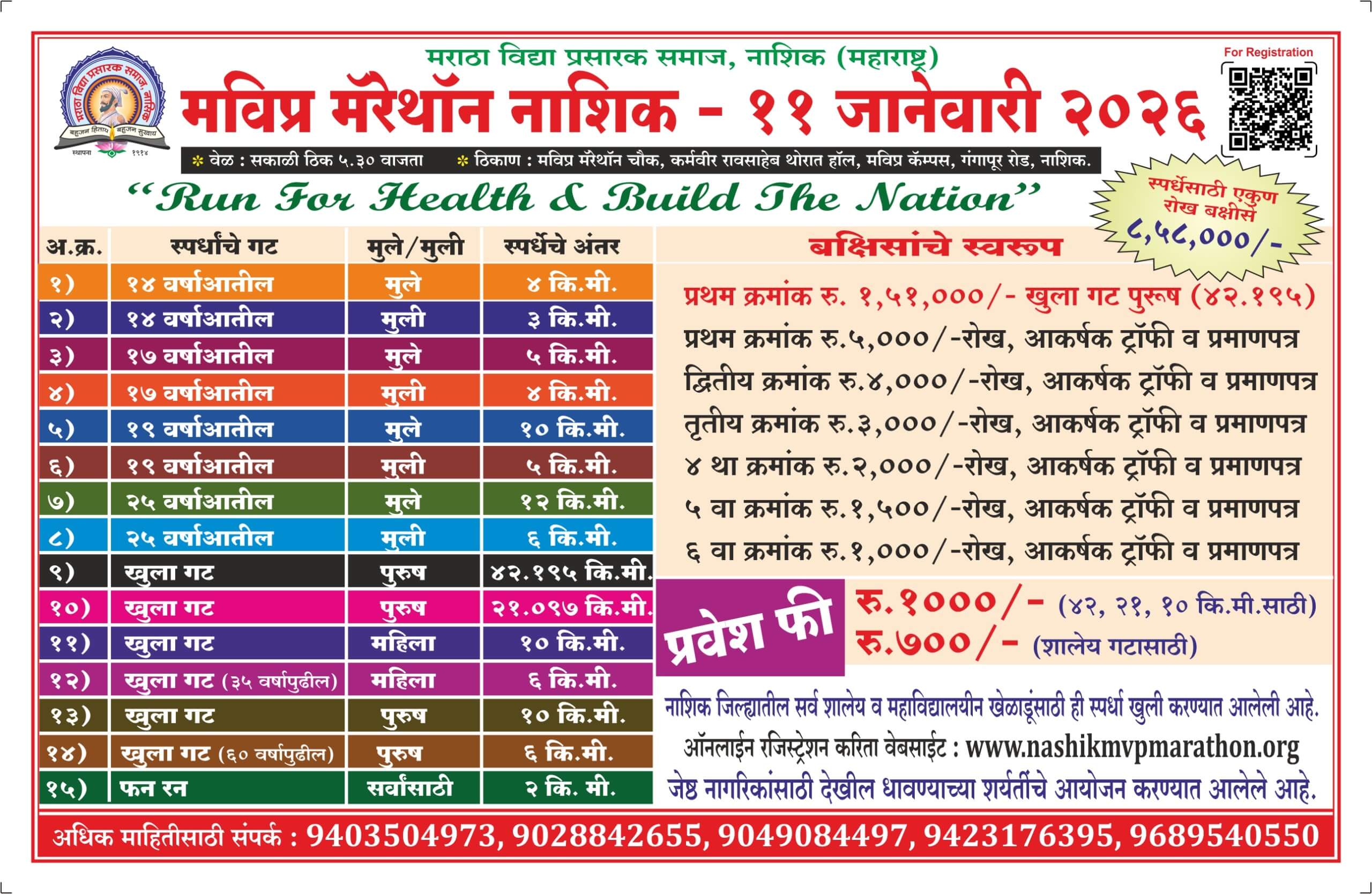 Dear Viewer , please Register for the 10th National & 15th State Level MVP Marathon 2026 “Run For Health & Build The Nation” by click on below link,